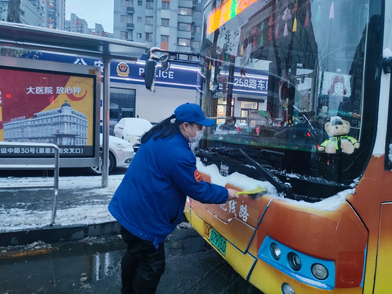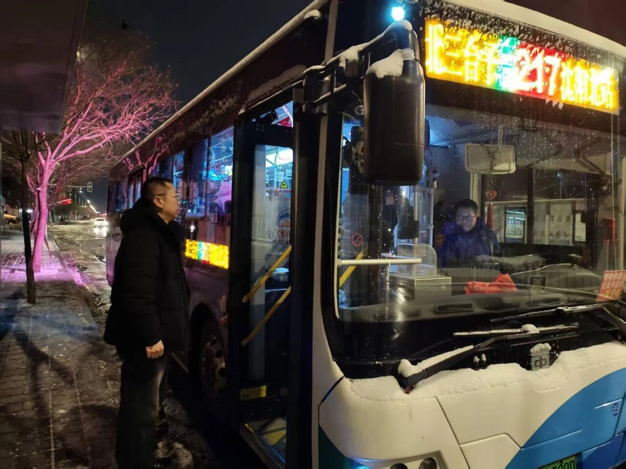 駕駛員在運營過程中嚴(yán)格遵守雪天行車規(guī)范,謹(jǐn)慎控制車速,保持安全距離,并貼心提醒乘客扶穩(wěn)坐好。在途經(jīng)無護欄路段、人行橫道時,主動減速避讓,禮讓行人,展現(xiàn)出專業(yè)的駕駛素養(yǎng)與暖心的服務(wù)意識。同時,他們及時將路面雪情、通行條件等信息實時反饋至調(diào)度中心,為靈活調(diào)整運營方案、科學(xué)調(diào)配運力提供了重要的信息支撐。