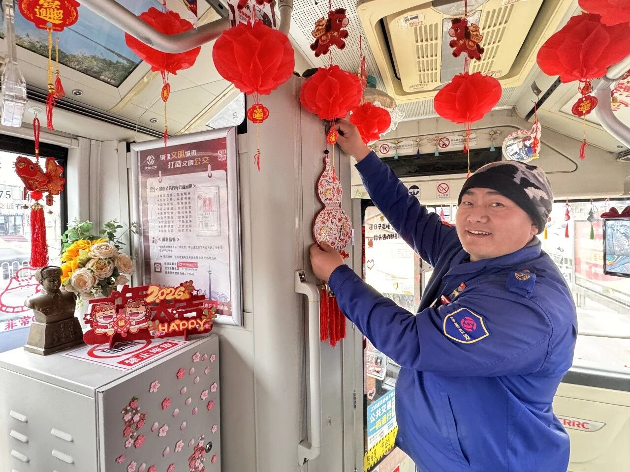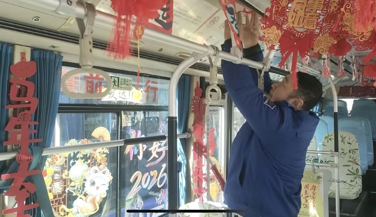 客運(yùn)集團(tuán)近期組織對所屬線路運(yùn)營車輛進(jìn)行徹底清掃與精心裝飾。車窗上貼起福字窗花,車廂內(nèi)懸掛起紅彤彤的小燈籠,扶手欄上點(diǎn)綴著新春飾物,一輛輛公交車煥然一新。整潔明亮的車廂與喜慶祥和的裝飾交相輝映,使乘客一上車便能沉浸于歡樂的節(jié)日氛圍之中,開啟一段充滿年味的行程。