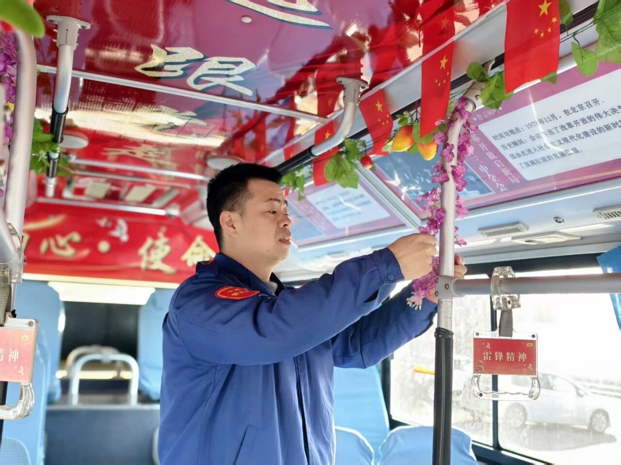 春節(jié)期間,乘客數(shù)量激增,通往商圈的車流格外密集。陳星池手握方向盤,平穩(wěn)駕駛,仔細(xì)觀察著乘客上下車,耐心提醒注意安全。對于春節(jié)出行的特殊乘客,他更是格外用心:“春節(jié)期間人流密集,建議提前到達(dá)站點(diǎn),避免因趕車奔跑導(dǎo)致摔倒。雨雪天氣時(shí),上車小心臺階濕滑。春節(jié)期間行李較多,建議大件行李放在車廂中部,避免堵塞通道或影響他人?!?/p>